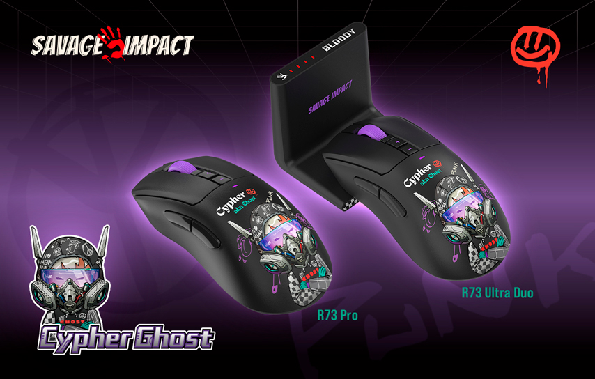 Bloody, бренд компьютерной периферии для геймеров, представил новые игровые мыши R73 Pro, R73 Ultra и R73 Ultra Duo. Модели представлены как в классической черной расцветке, так и в трех новых вариациях с персонажами из коллаборации Bloody и Savage Impact.